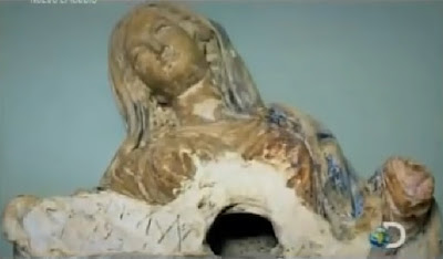 la respuesta podría estar conectada con un descubrimiento inesperado en la estatua. junto a la virgen maría una figura rota sostiene la mano de jesús.